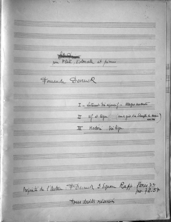 Violoncelle, Flûte, Piano, PianoStatut du manuscrit