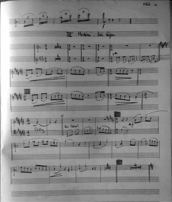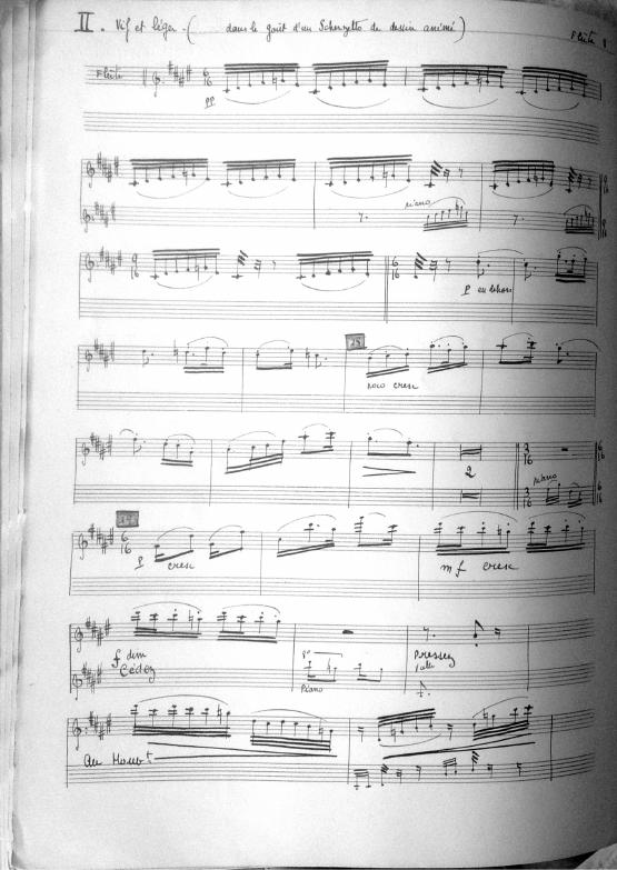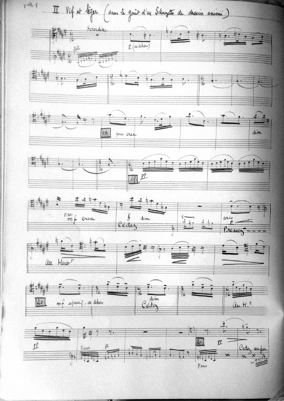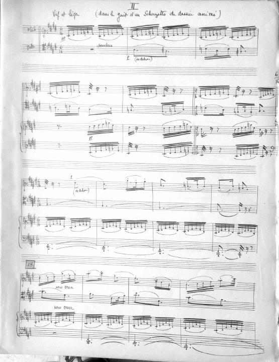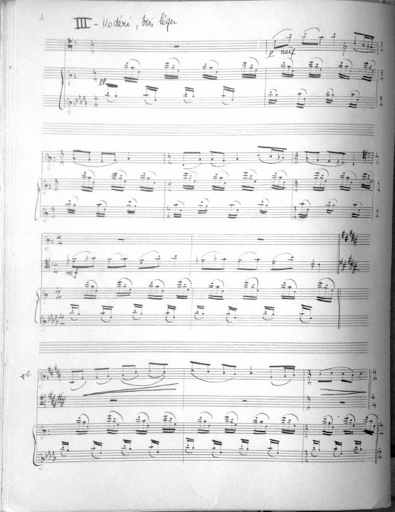 1- Lentement, très expressif (allegro moderato); 2- Vif et léger (dans le goût d’un scherzetto de dessin animé); 3- Modéré, très léger