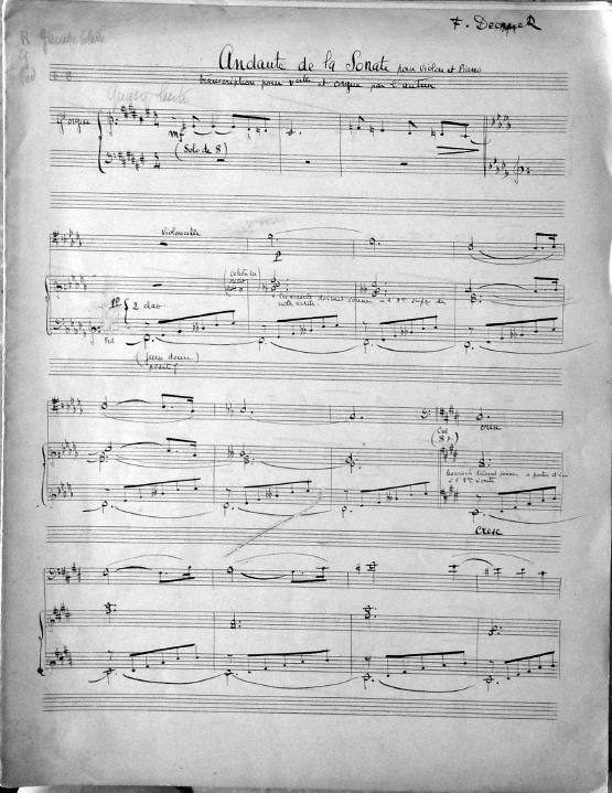 Andante de la Sonate pour violon et piano; transcription pour violoncelle et orgue par l'auteur