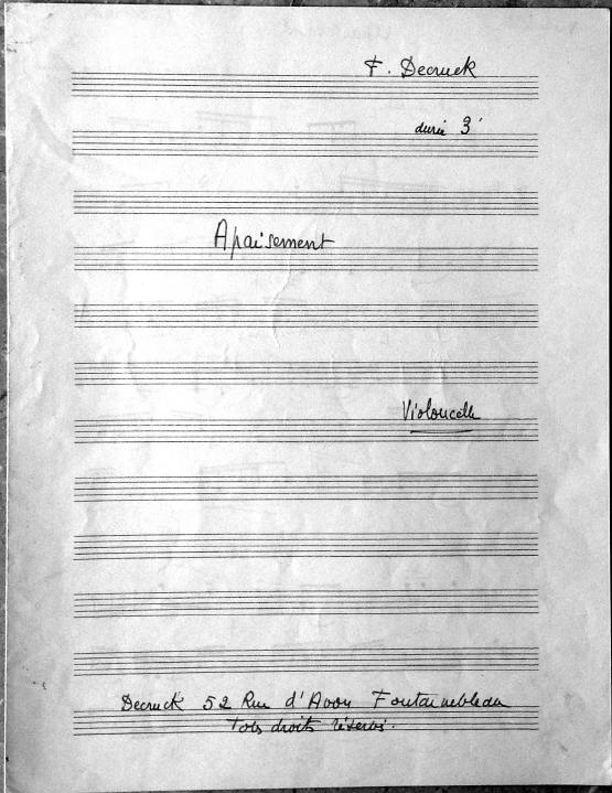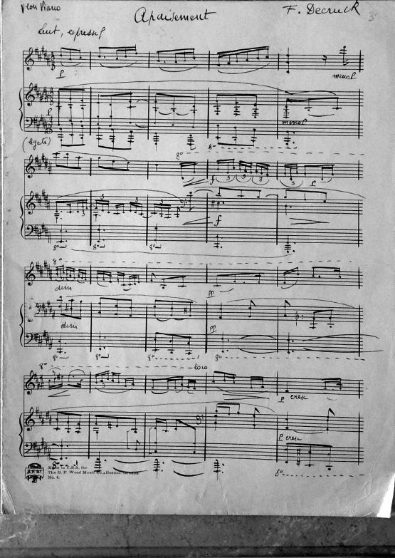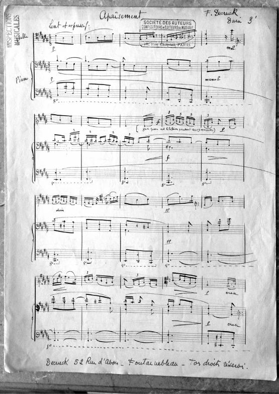 This work is from the same time period as Recueillement and Les Serenades. It may have been a work for Decruck's son Michel or for her students.