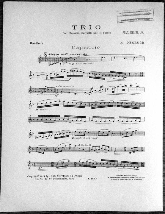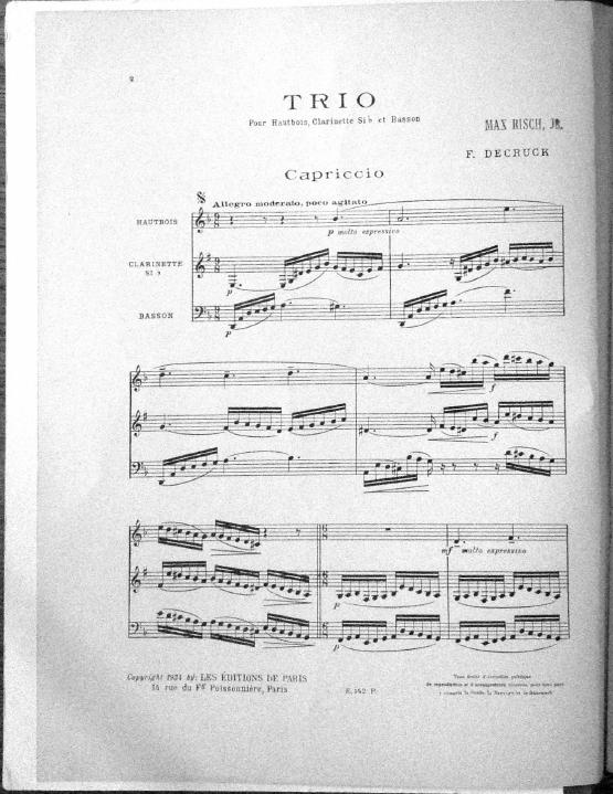 Capriccio, trio pour hautbois, clarinette et basson
