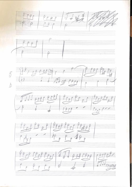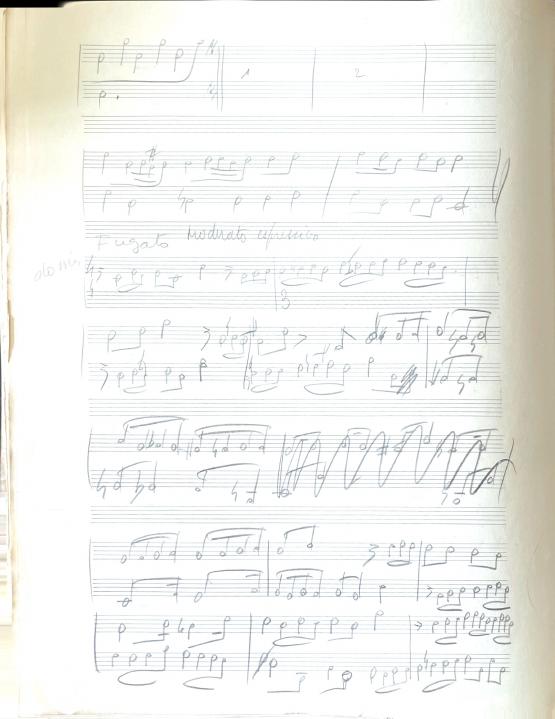 This work could most likely be reconstructed. The draft is close to complete. It is missing dynamics, articulation marks and some tempo indications.
