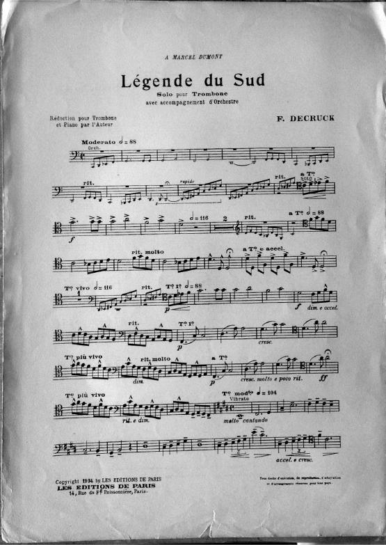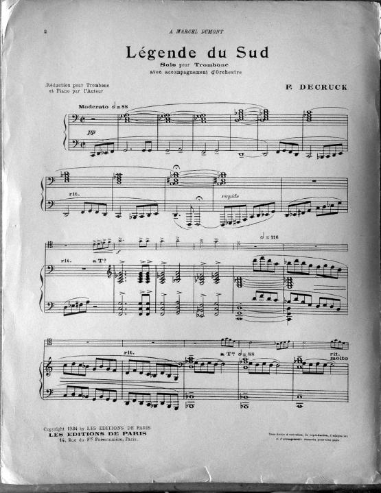 Légende du sud Réduction pour trombone et piano