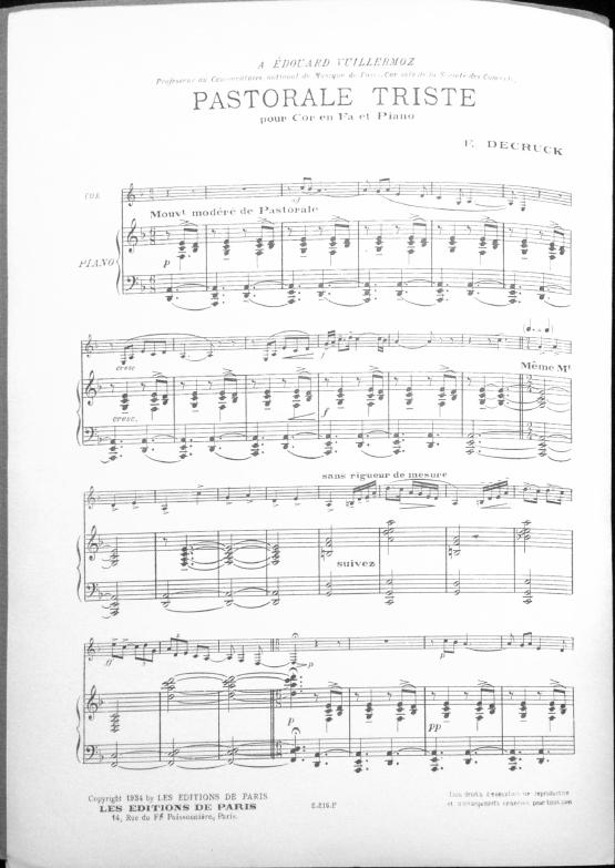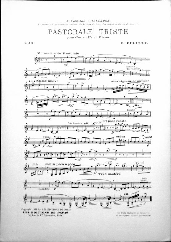 Dédiée à Edouard Villermoz, professeur au Conservatoire et cor solo de la Société des Concerts