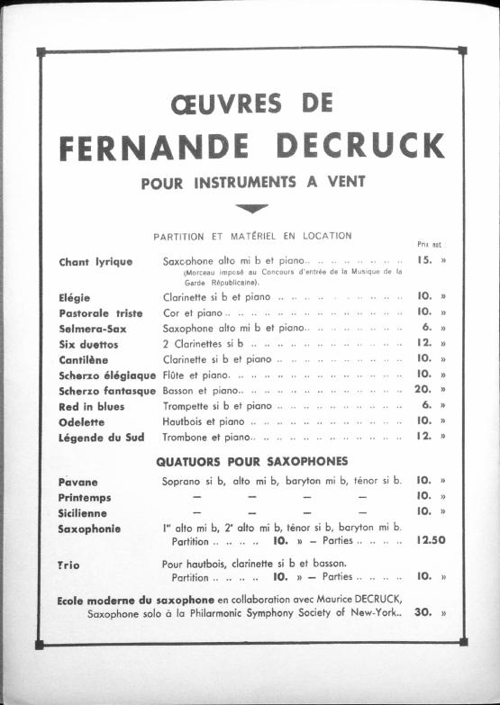 This melody was later used in Decruck's 1949 work Serenade Sentimentale.
