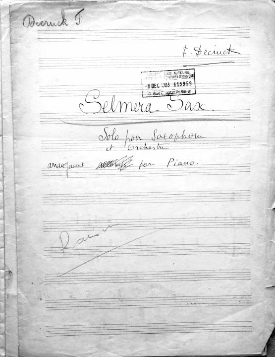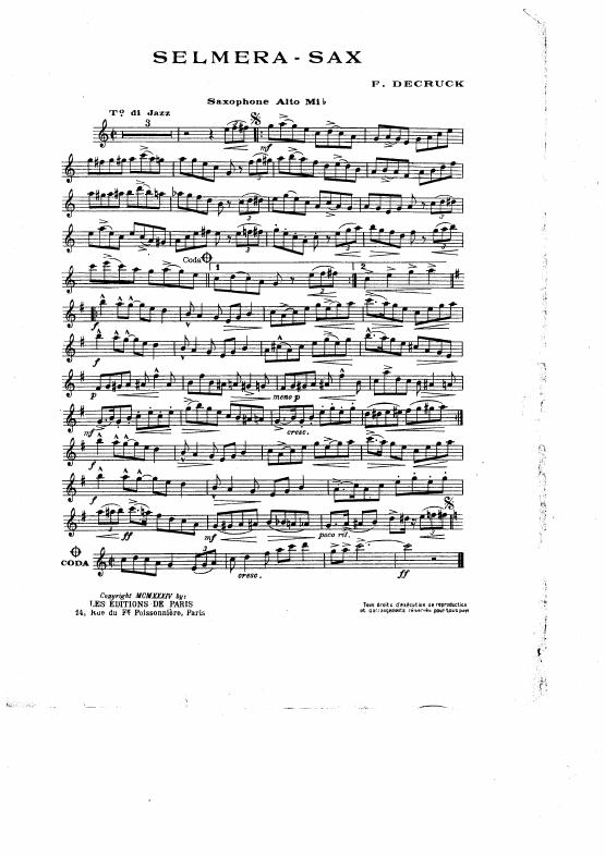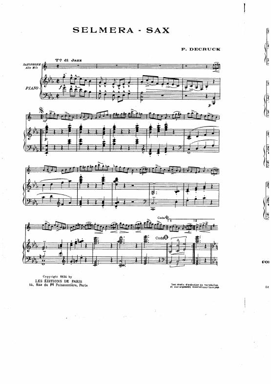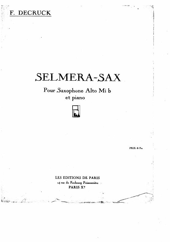 Selmera Sax pour saxophone et orchestre: Reduction pour saxophone et piano