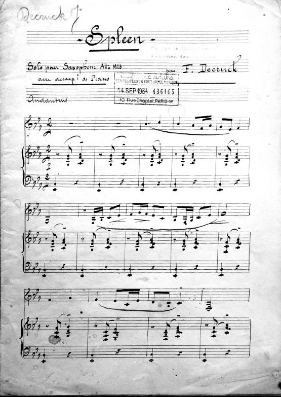 Spleen pour saxophone alto mi bémol avec accompagnement piano