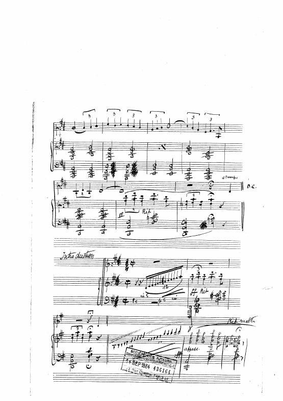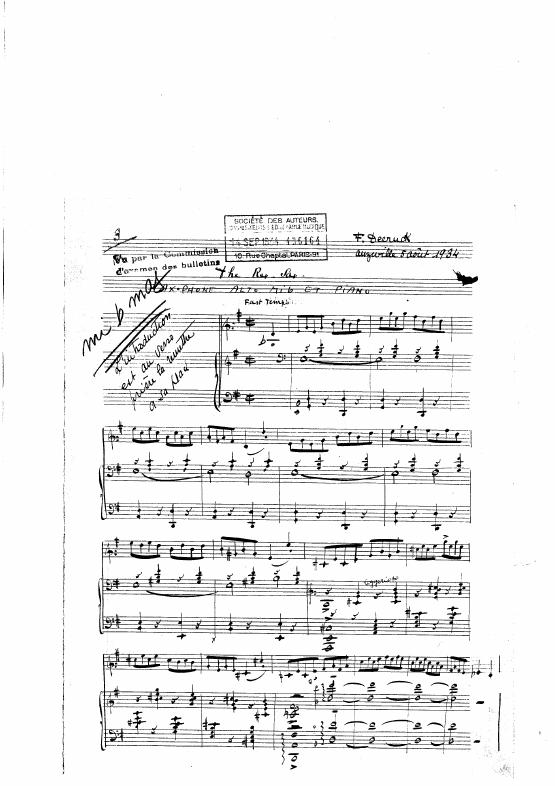 Piano, Alto Saxophone, Alto SaxophoneStatut du manuscrit