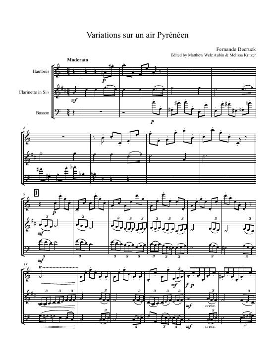 Variations sur un air pyrénéen, trio pour hautbois, clarinette et basson